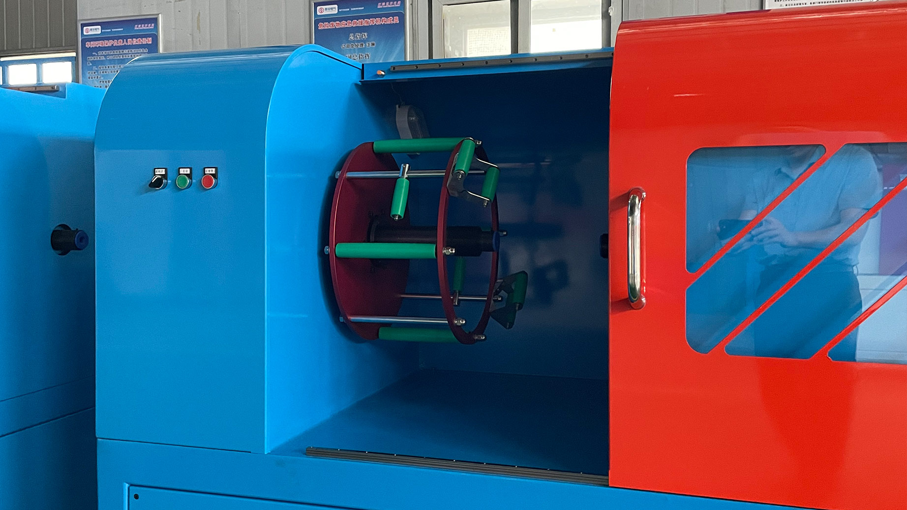 鹿豐繞包機(jī),采用可以移動推拉式防護(hù)門,操作方便,經(jīng)久耐用,便于塔盤及單片帶材上下。