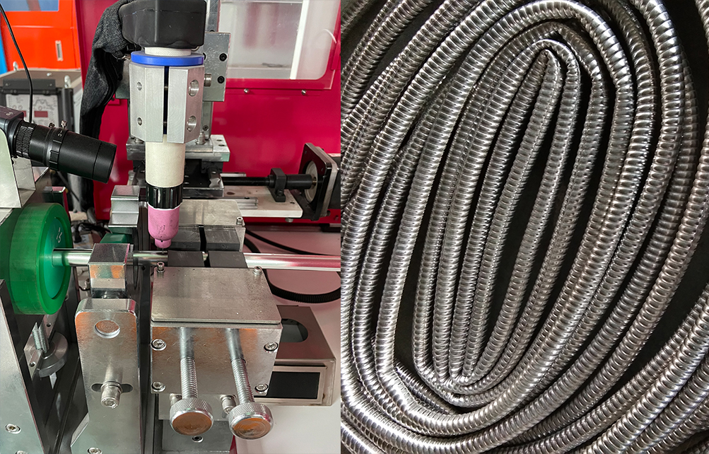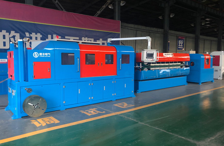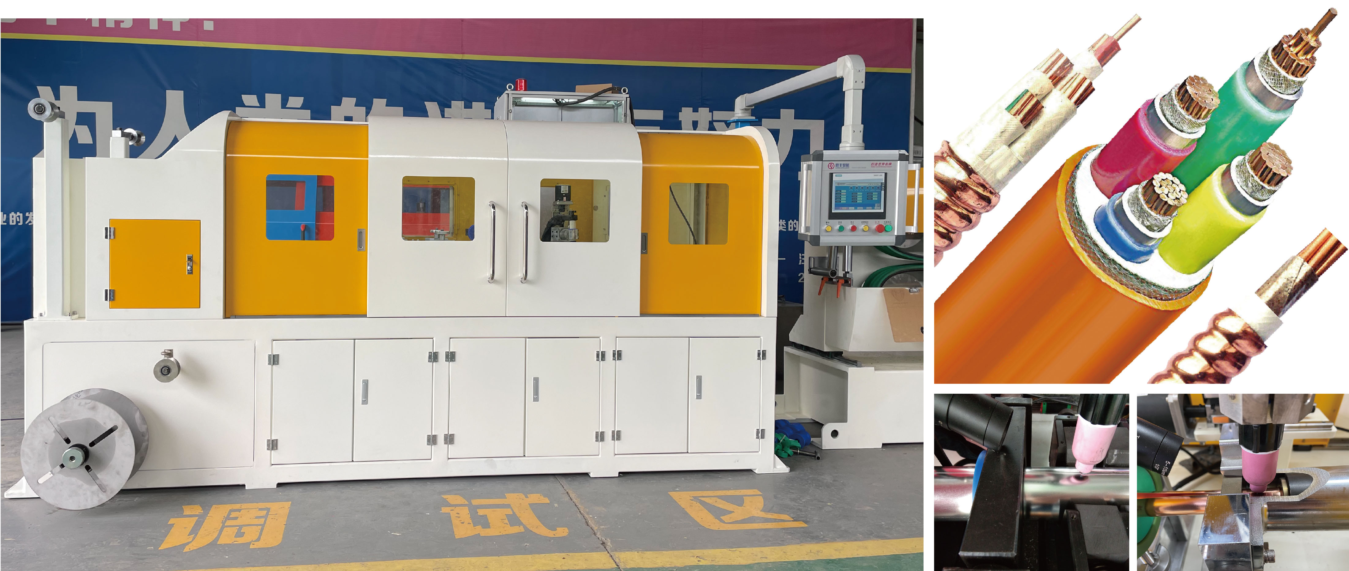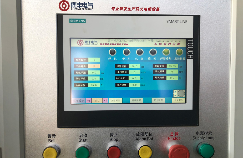 鹿豐自主研發(fā)的氬弧焊軋紋機(jī),軋紋機(jī)頭不僅實(shí)現(xiàn)了高速啟動,高速停車,全電控一體化完成,軋紋機(jī)頭不用噴油,減少了環(huán)境污染,提高線纜質(zhì)量。